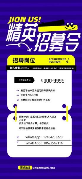 有销售、地推或市场经验者优先 (经验丰富, 工资可议)