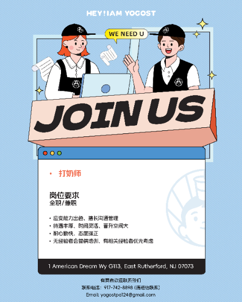 纽约甲店请人